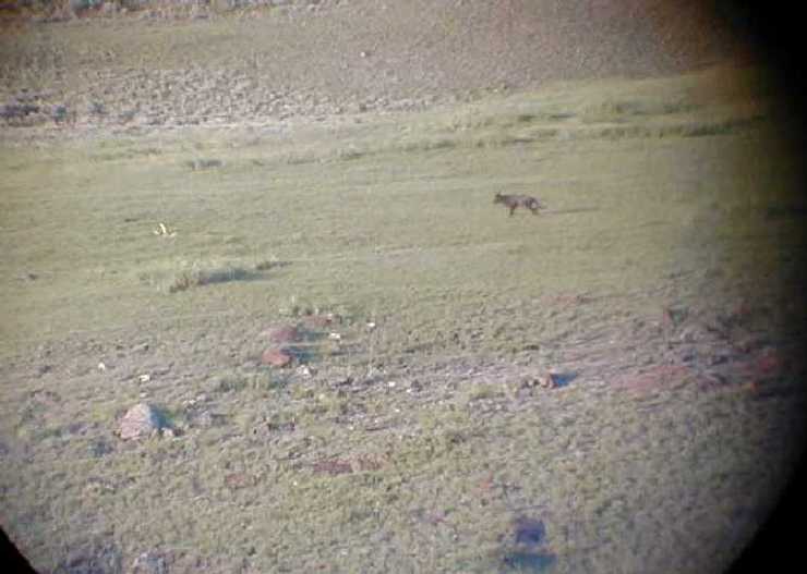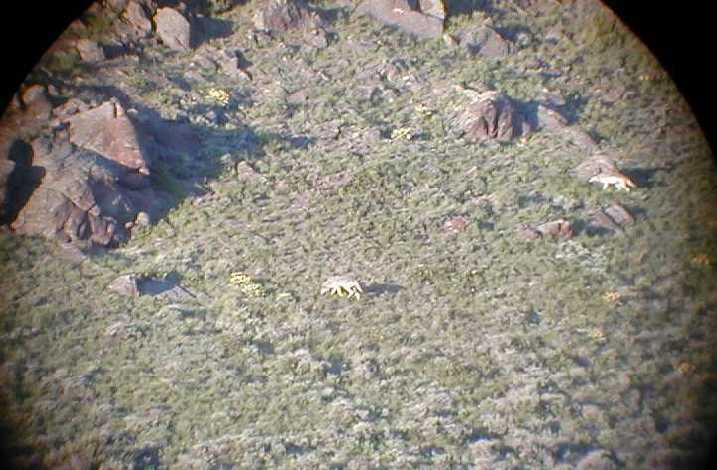 YNP 2002 Page 5 Long Shots With a Digi (Held up to my scope.) It takes some looking, but there ARE wolves in these pictures!